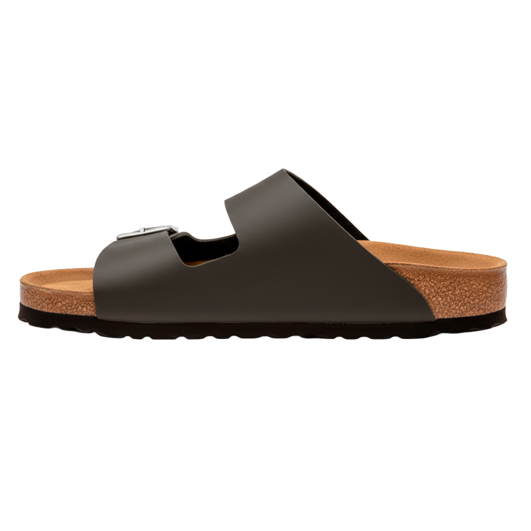 Pensada para quien quiere sobriedad con actitud, la versión gris ceniza mantiene el look minimal del drop Foundations. Ajuste cómodo gracias a la doble hebilla, plantilla suave y suela con tracción que se siente segura en pavimento o interiores. Un par versátil que eleva lo cotidiano sin exagerar.